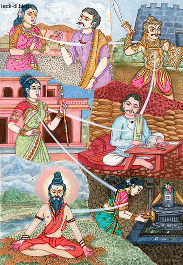 توضیحات : تصویر فوق یک نقاشی در رابطه با تناسخ میباشد . در واقع این عکس زندگی یک شخص زندگی های مختلف یک فرد را دوران های مختلف میتوانید مشاهده کنید .